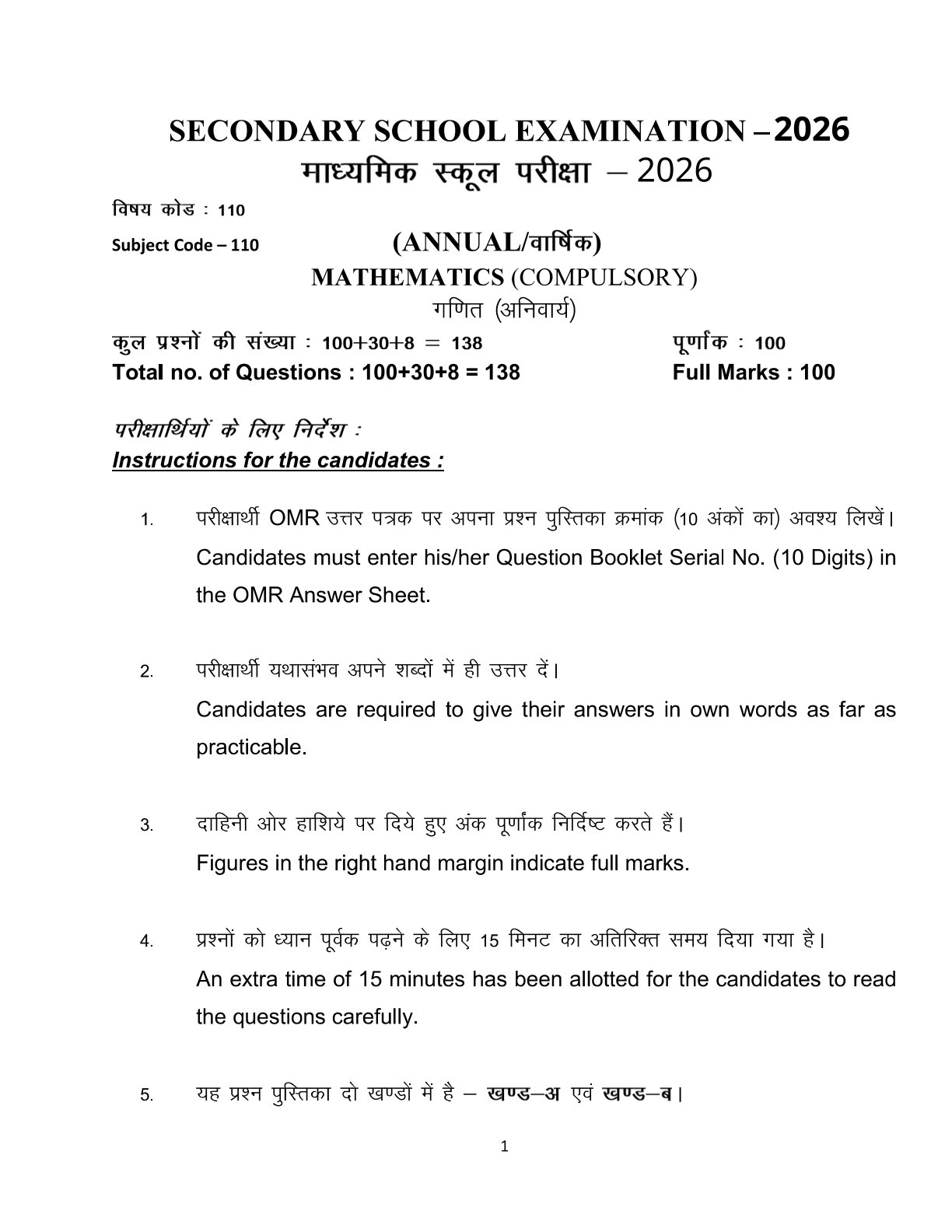 बिहार विद्यालय परीक्षा समिति के द्वारा गणित का जारी किया गया मॉडल पेपर यहां पर दिया गया है। जो बिहार बोर्ड मैट्रिक परीक्षा 2026 के लिए बहुत ही महत्वपूर्ण है। अगर आप लोग इस मॉडल पेपर को अपने फोन में डाउनलोड करना चाहते हैं। तो सभी मॉडल पेपर का लिंक कहां पर दिया गया जहां से आप लोग डायरेक्ट डाउनलोड कर सकते हैं।